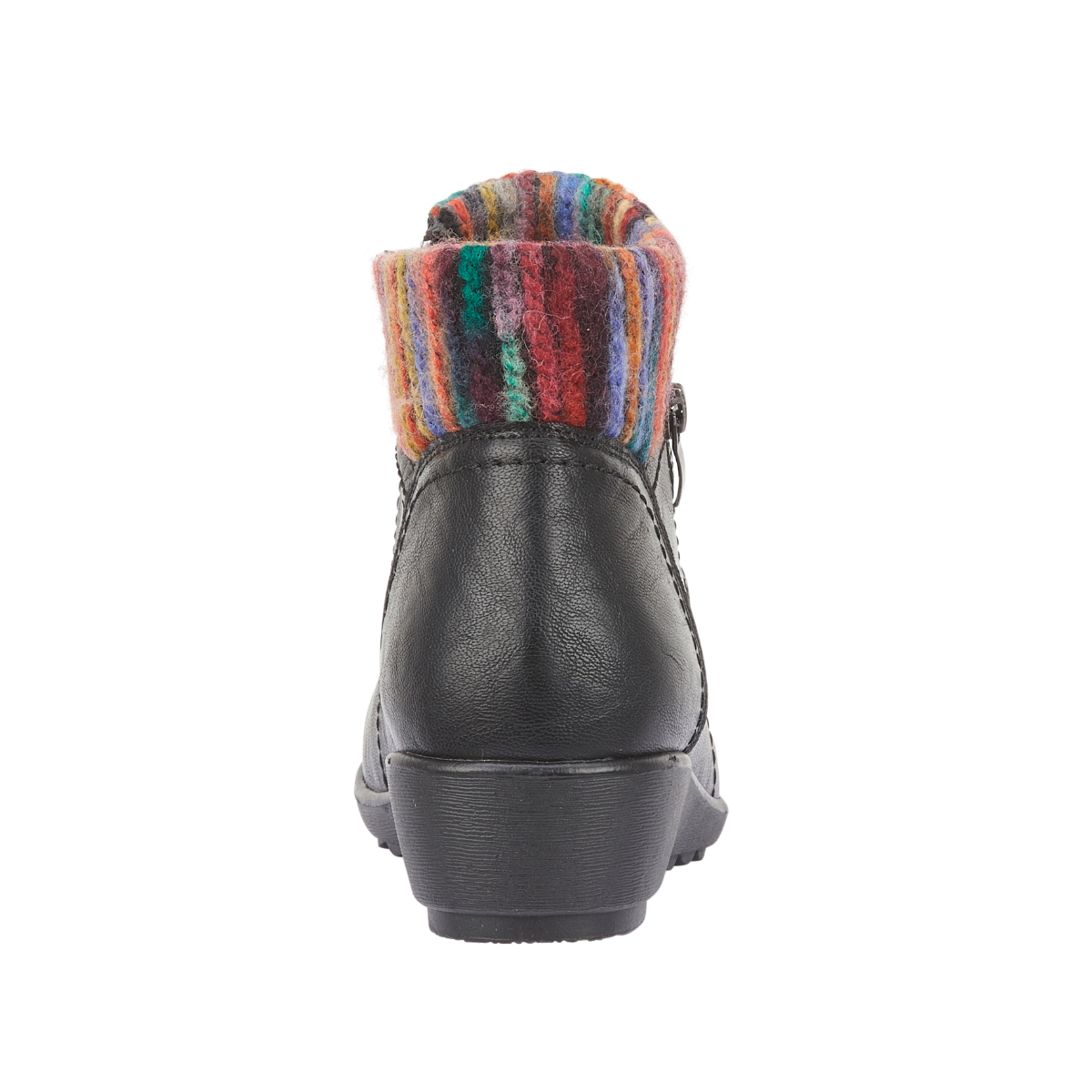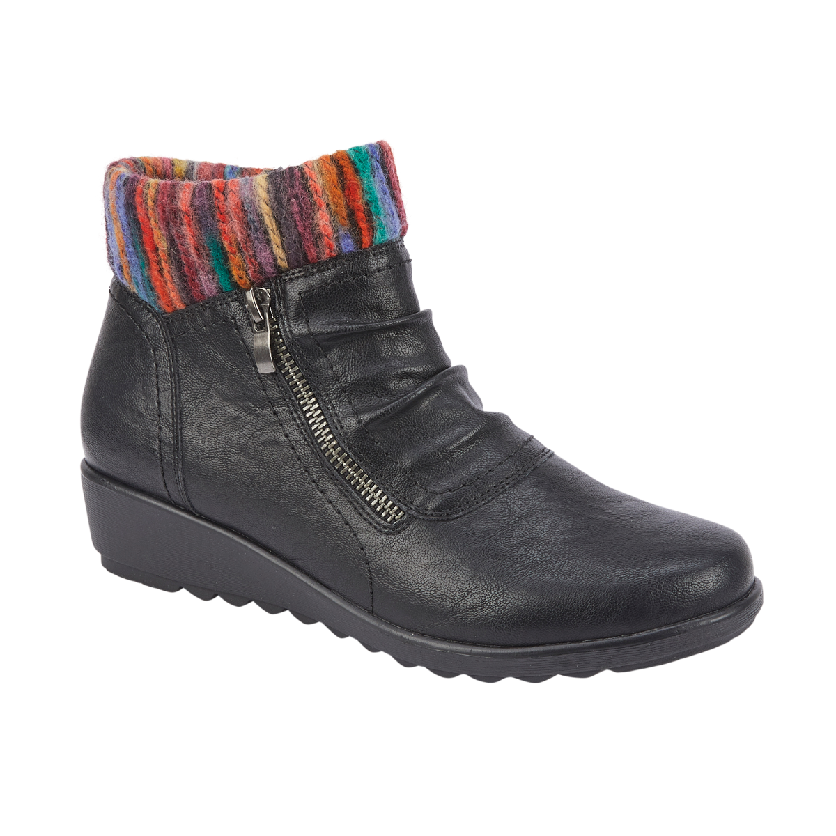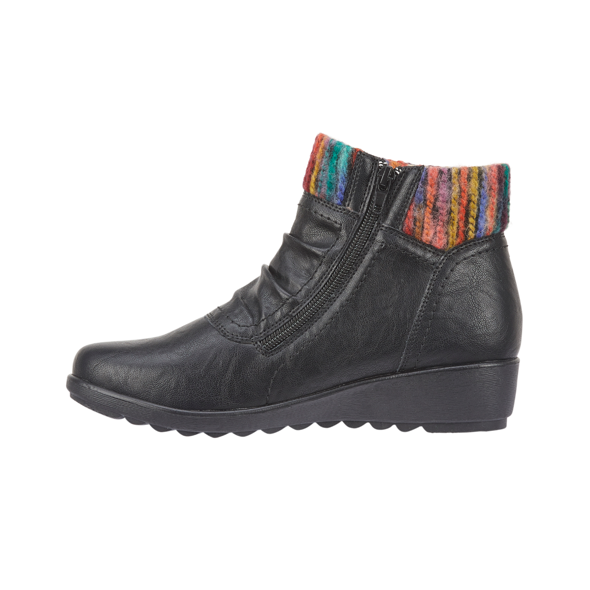 Abigail Black Wedge Boot with Multi Coloured Knit Collar