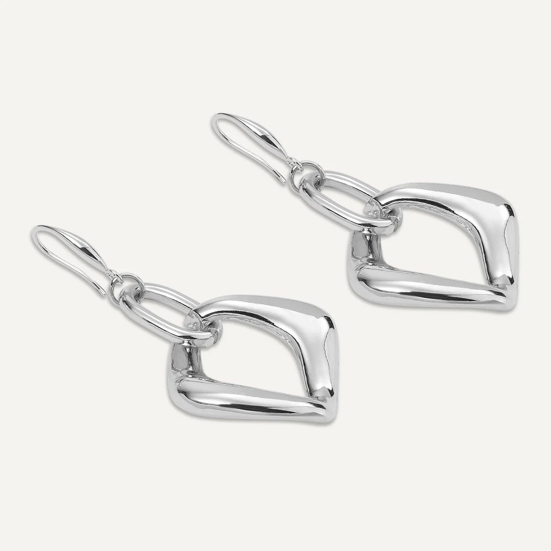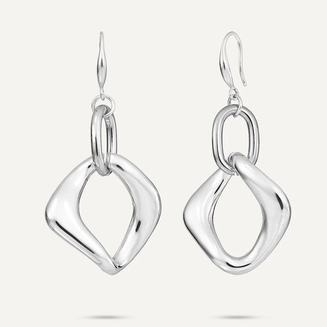 With their contemporary geometric design, these rhodium statement earrings are a little Bohemian, a little abstract, yet highly sophisticated. The perfect all-occasion earrings, casual yet chic, project an upscale look even if it's a dress-down day.