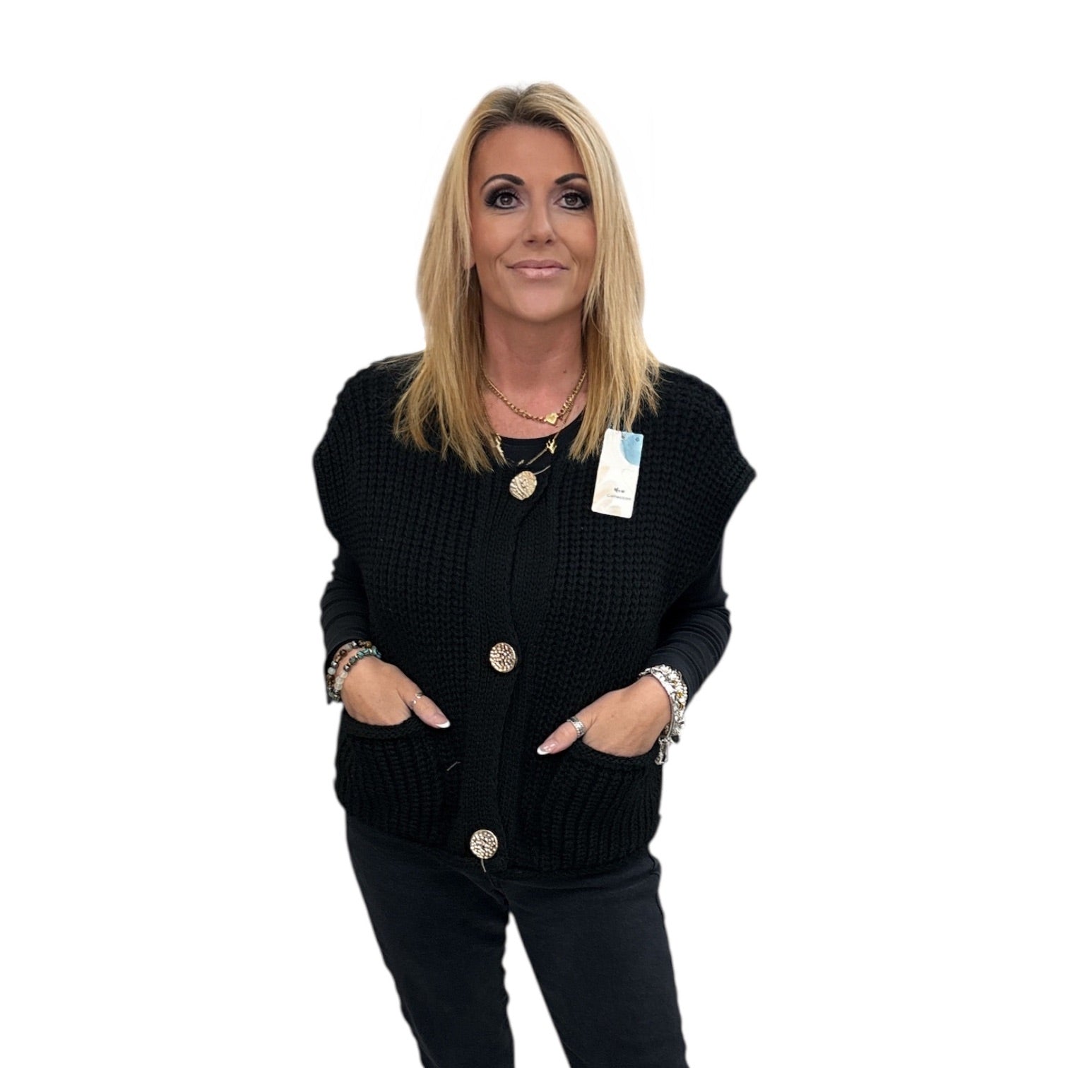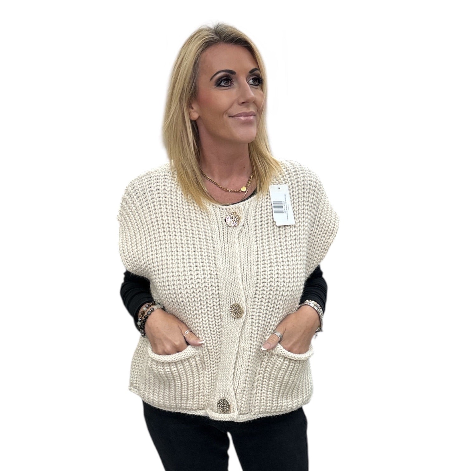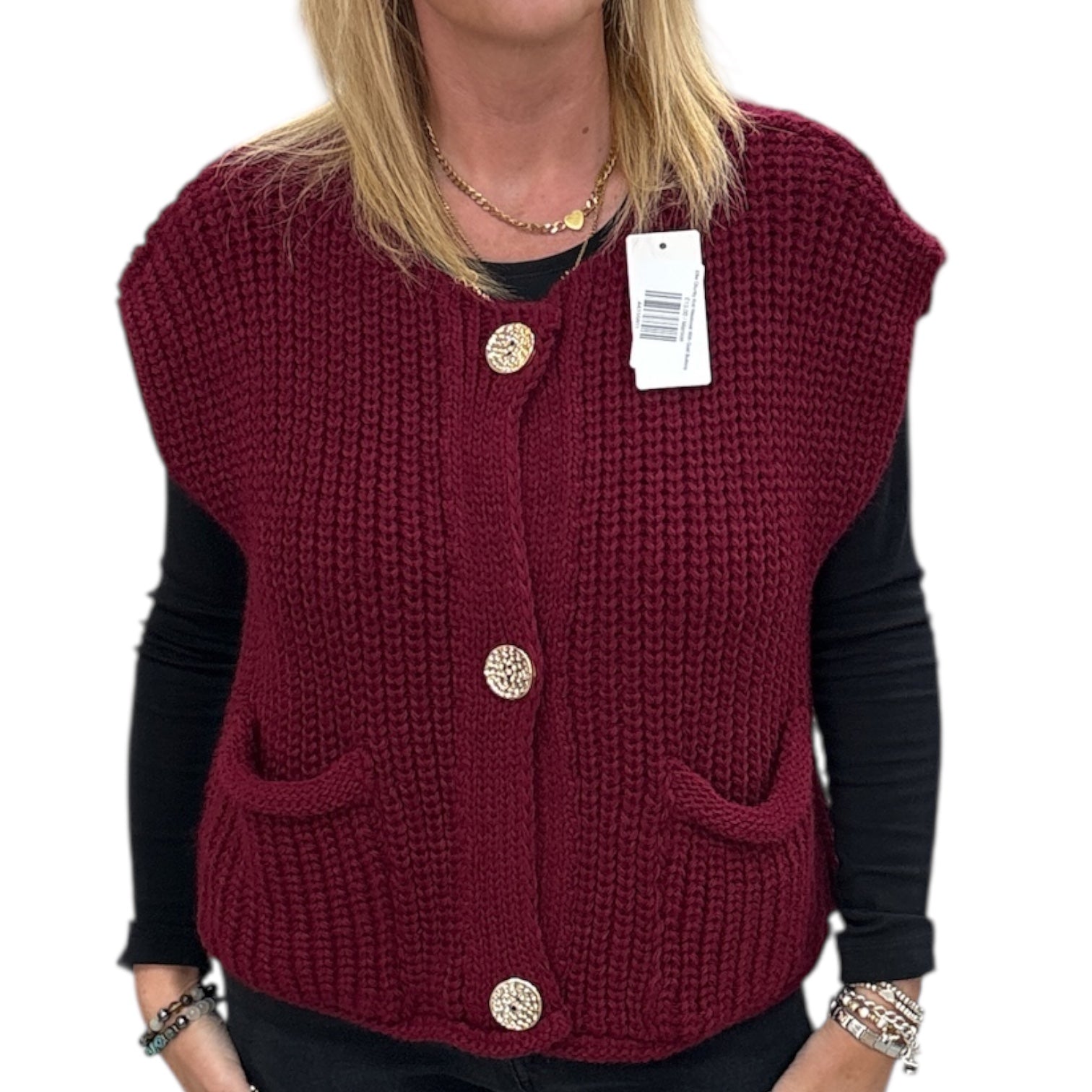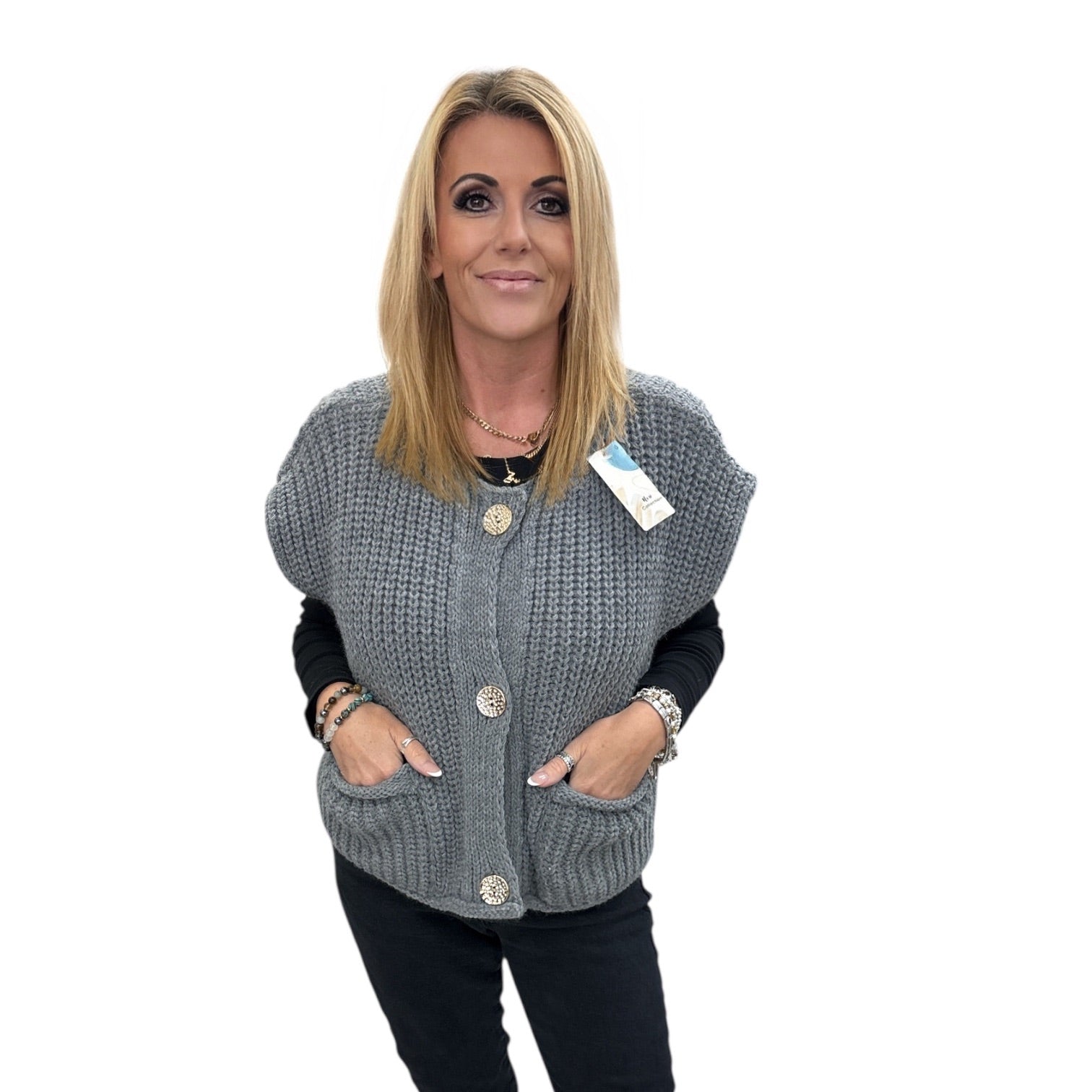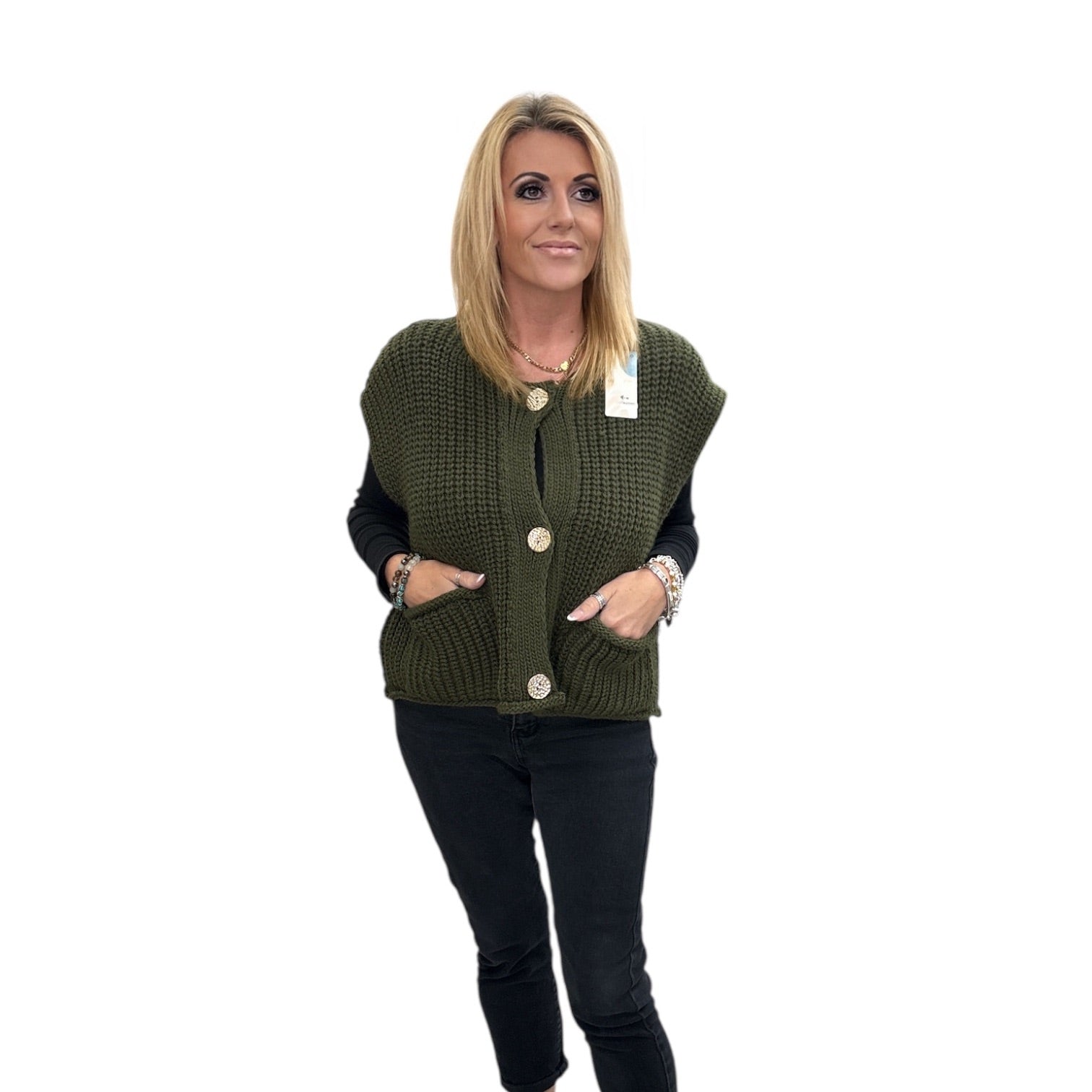Ellie Chunky Knit Waistcoat With Gold Buttons