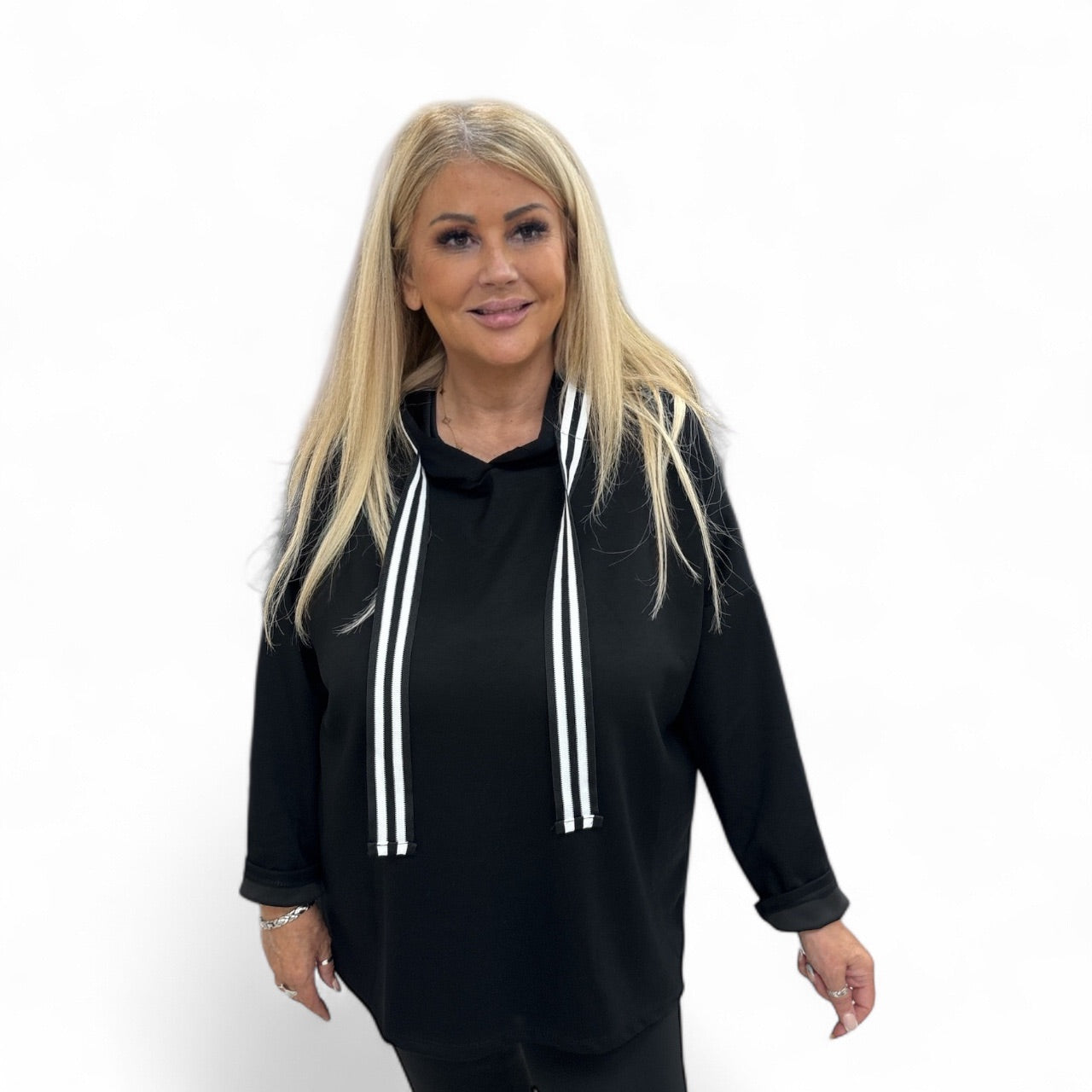 Anya Striped Panel Hood Detailed Top