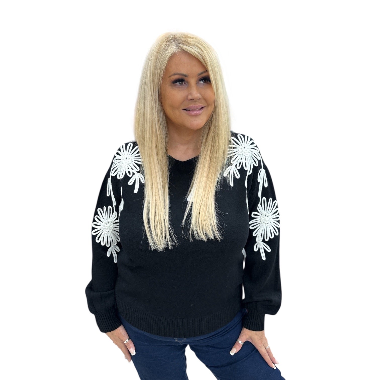 Lexi Embroidered floral Shoulder & Arm Detailed Jumper