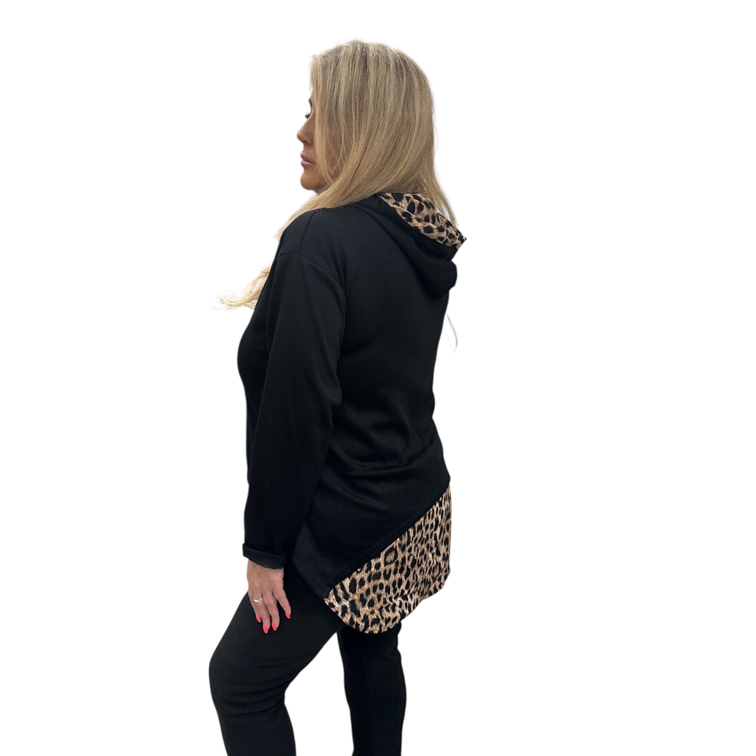 Helen Hooded Leopard Print Layered Sweat Top