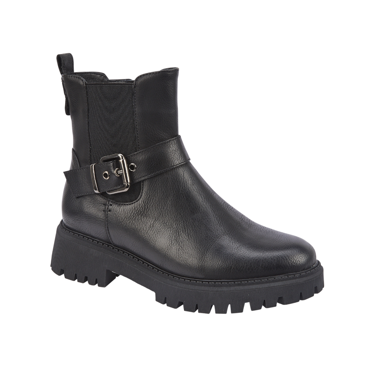 Lapari Black Chunky Sole Ankle Boot With Buckle