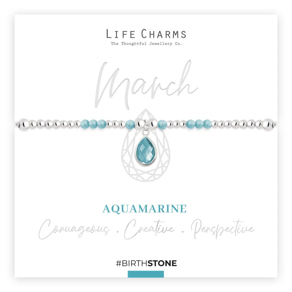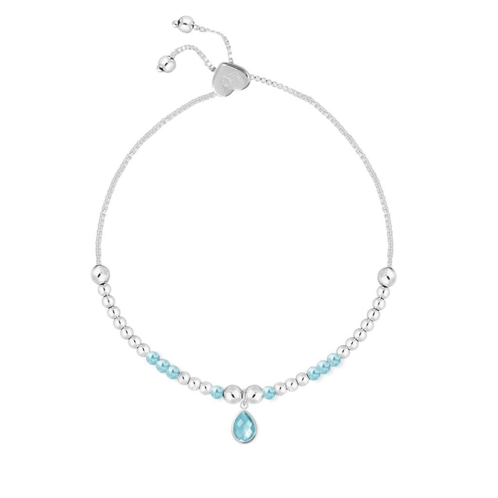 Adjustable slider March bracelet with elegant tear drop pendant and special blue aquamarine gemstones
