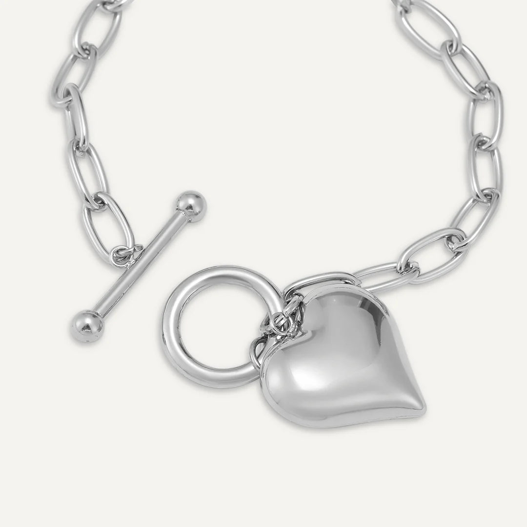 Steal all the attention at your next event with this trendy heart charm T-bar bracelet. This beautiful piece would make a great fashion accessory to any event - work or play.