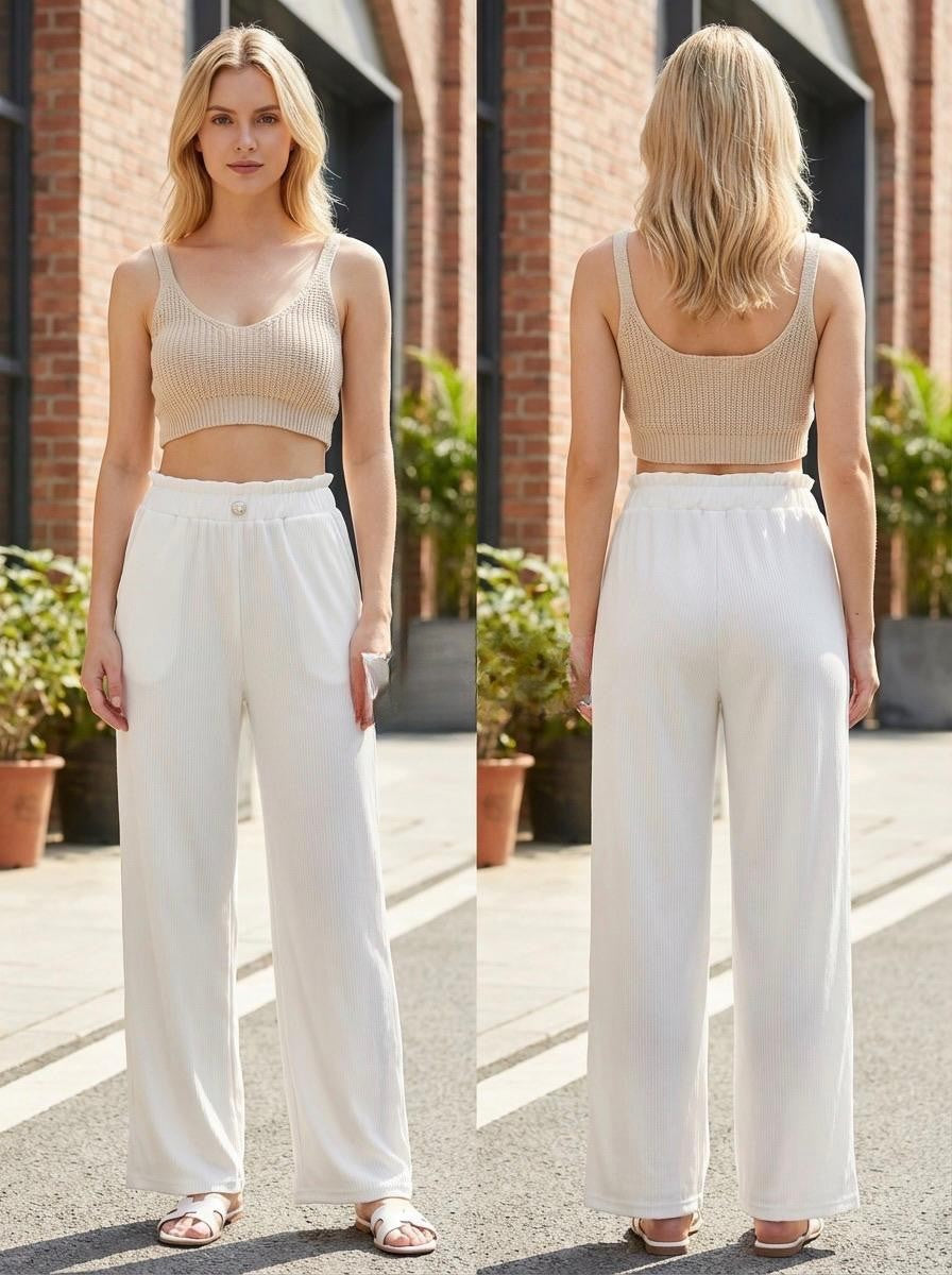 Daisy Fine Ribbed Lightweight Wide Leg Trousers