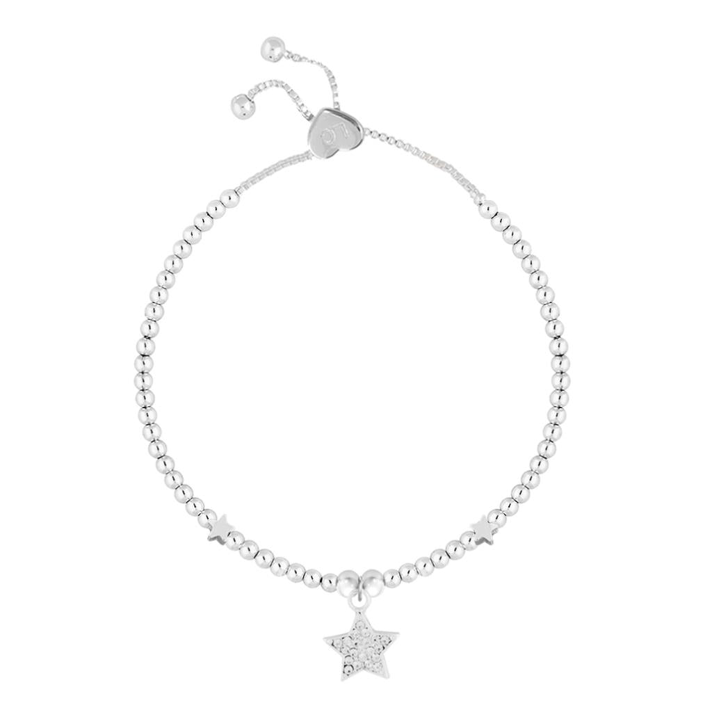 - The bracelet features 3mm silver plated beads with a diamond filled star charm and a mini star charm on each side, and sits presented on the most gorgeous gift card.