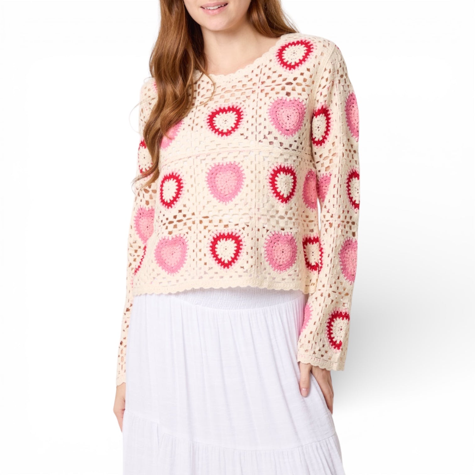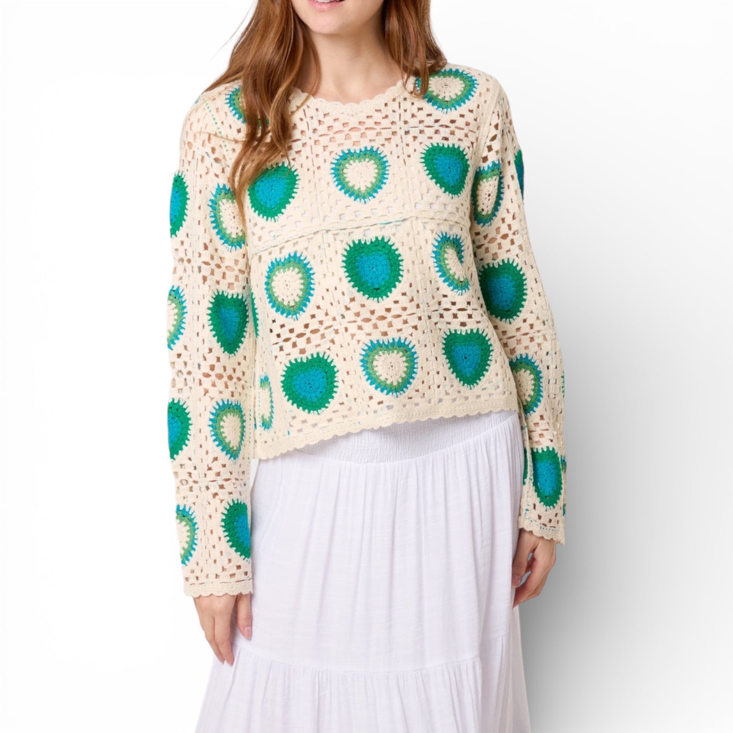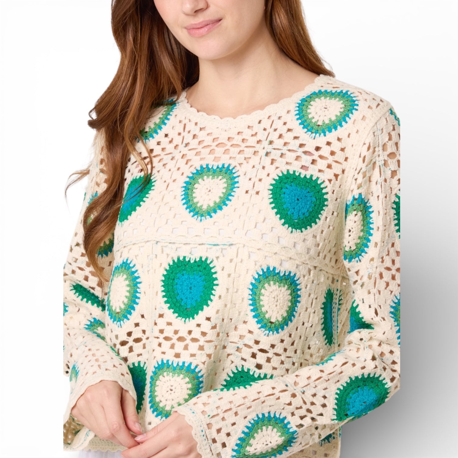 Olive Patchwork Hearts Crochet Jumper