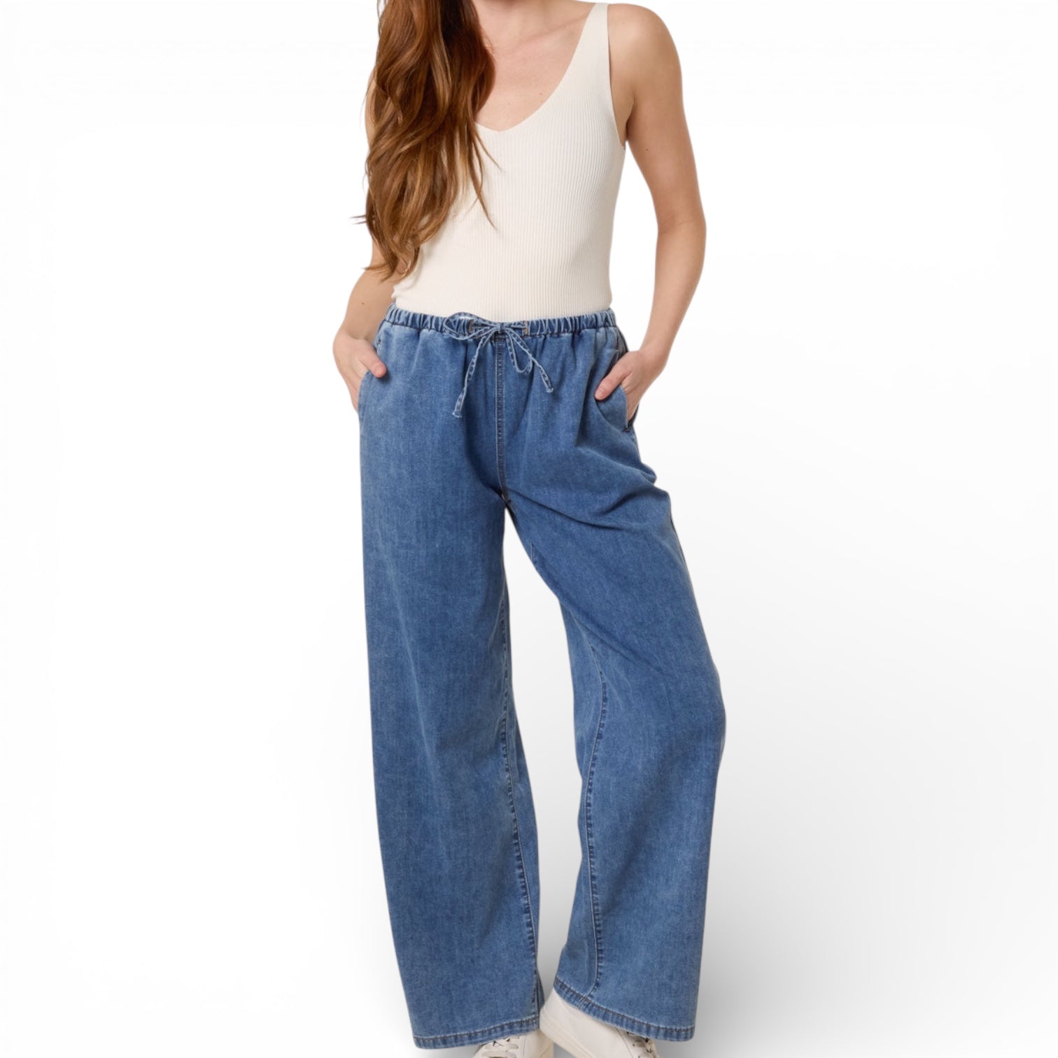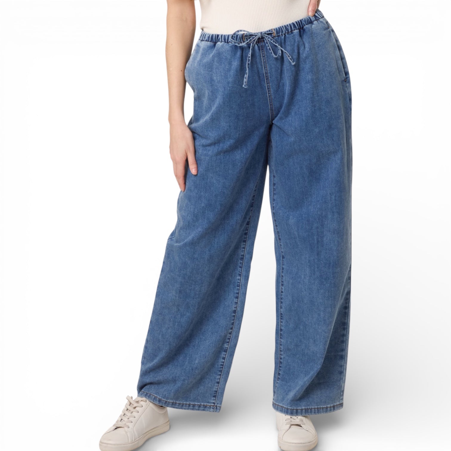 Sharlene Drawstring Wide Leg Denim Trouser